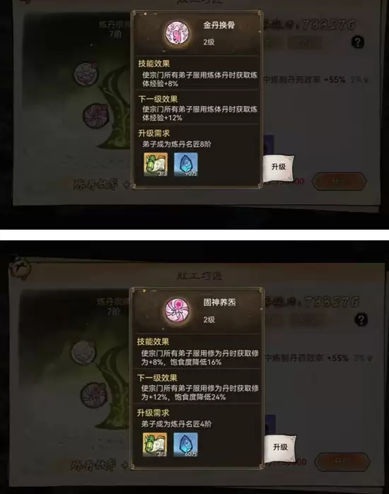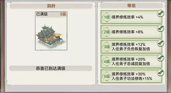 建议专门挑选一个洞府,将其升至满级后,把要服用丹药的弟子调换至该房间,让他入住满级洞府。这样就能获得境界修炼效率30%的额外加成。
