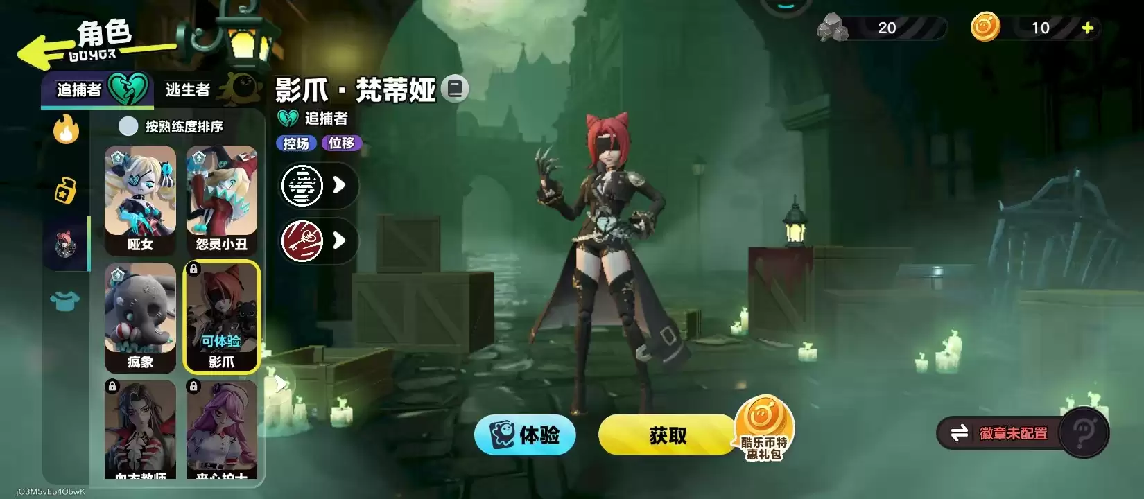获取影爪的流程和其他追捕者角色基本一致,整个过程没有门槛更没有套路;版本更新后,官方会同步开启限时兑换活动。玩家如果想入手其实并不复杂,只需跟着攻略一步步来就行。既不用抽奖,也不必做复杂的任务,主要途径就是使用酷乐币直接兑换。