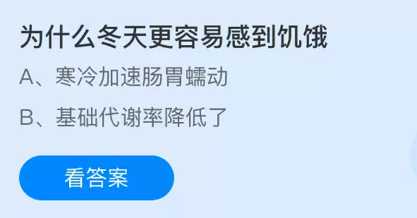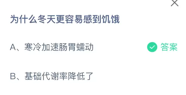 冬天容易饥饿原因揭秘,支付宝蚂蚁庄园今日答案