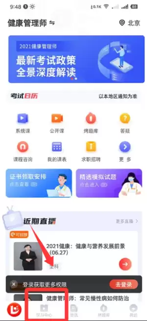2. 进入课程中心后,既可选择观看名师直播课,也能自主学习录播课程。通过系统的视频教学,逐步夯实专业知识基础。