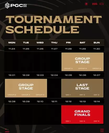 PGC2025全球总决赛11月28日正式开赛,PCL赛区6支战队勇猛出征!