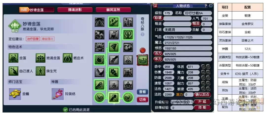 2、辅助无底洞装备套装:修罗傀儡妖灵饰属性:6治疗,6法防实战分析:辅助无底洞在近期的调整中得到了加强,地涌金莲的气血上限恢复效果获得提升,点出经脉【蛊灵】后还能提前拉起中锢魂术的倒地单位。辅助无底洞+化生寺的双辅助搭配,经常能构成铜墙铁壁般的防守阵容,即使面对三攻阵容也不会被击垮。