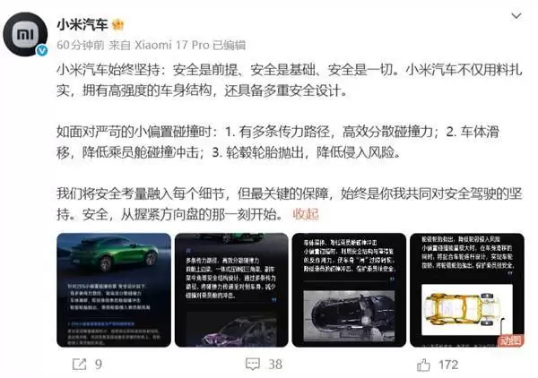 小米汽车安全设计突破:丢轮保命策略守护乘员舱安全