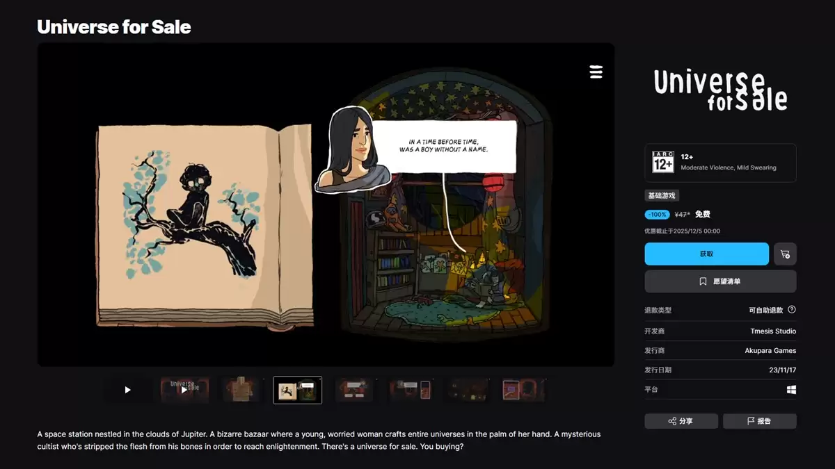 12月5日前Epic免费领《出售宇宙》,0元获取攻略