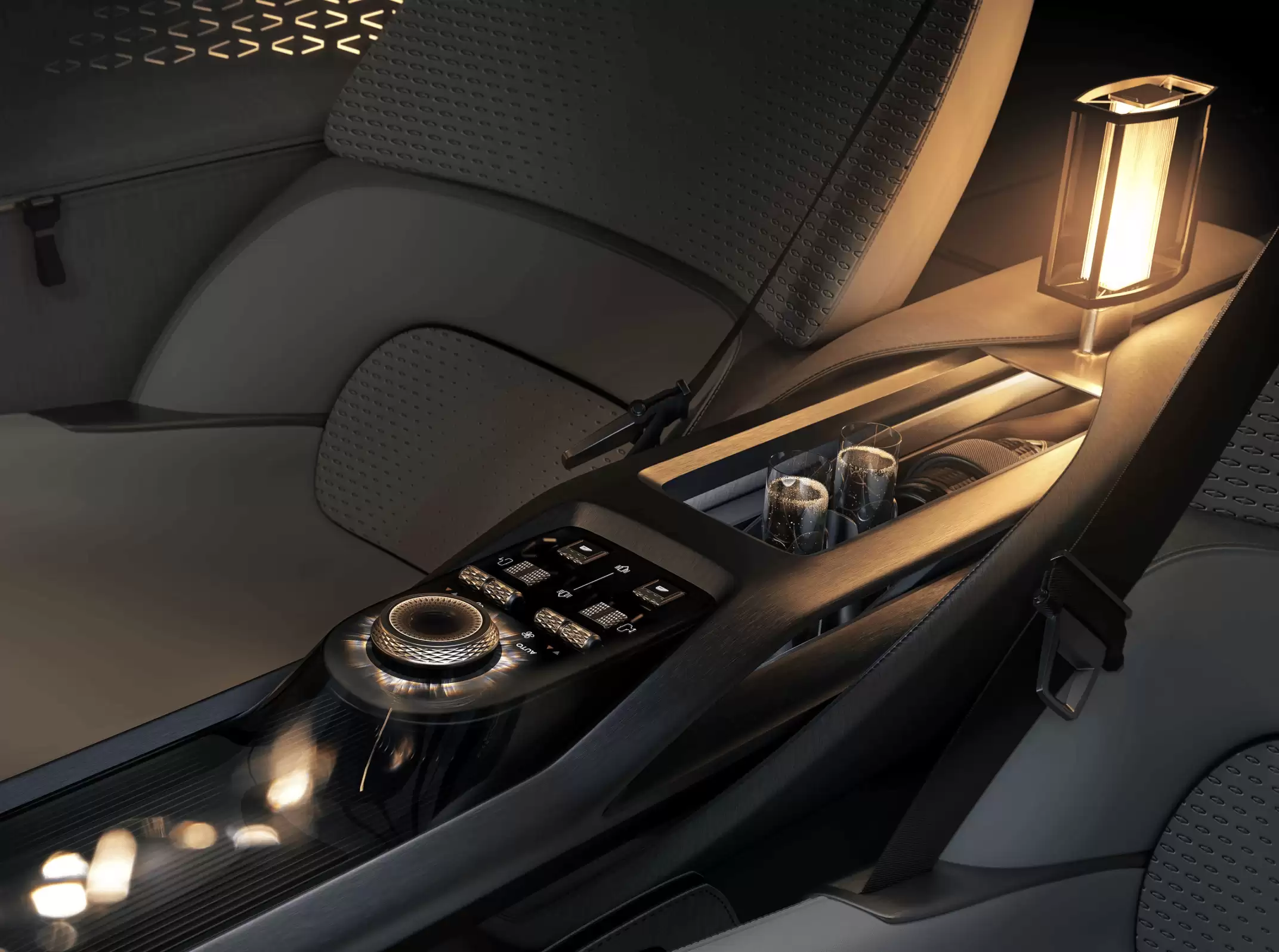 内饰堪称移动的艺术殿堂。酒红色诗米安材质与棕黄色装饰条交织,搭配实木饰板、丝绸斜纹布及编织金属等高端材质,营造出豪华而不失温馨的座舱氛围。翻毛皮方向盘集成钛金属换挡拨片,12点方向点缀黄色元素,致敬超跑设计语言。可旋转全宽数字仪表盘与可折叠中控大屏构成双屏交互系统,下方保留三个圆形指针仪表及复古机械表,形成传统与现代的碰撞。换挡区域采用精密机械按键布局,副驾驶座椅支持360度旋转,配合加热/通风/按摩及多向电动调节功能,将舒适性推向极致。
