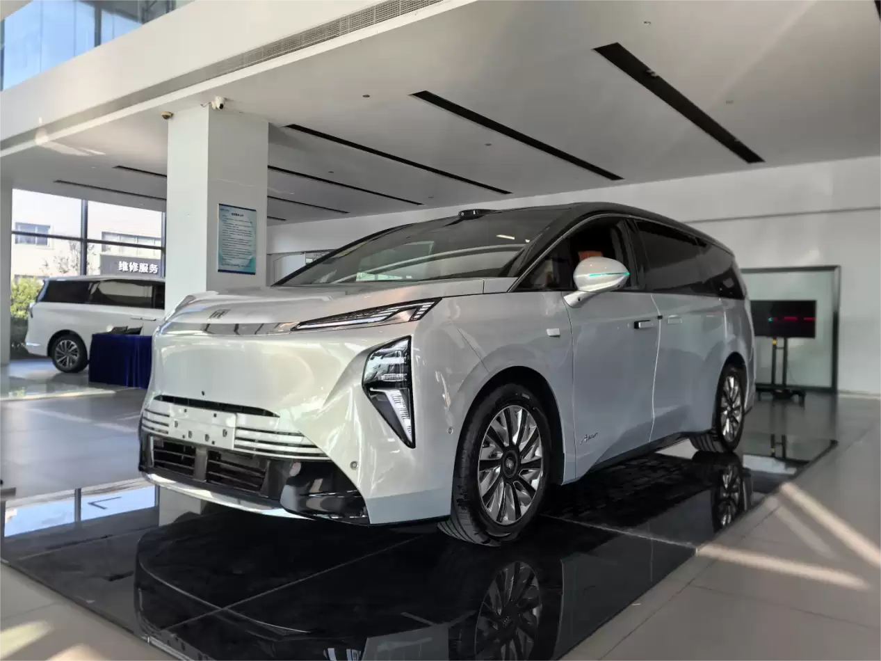 內饰设计延续豪华基调,环抱式座舱大量采用皮质软包材质,搭配木纹饰板与氛围灯,营造出温馨且高级的驾乘环境。第二排配备双独立零重力座椅,扶手集成触控屏,可调节座椅角度与模式,并提供吸顶屏、车载冰箱及小桌板等舒适性配置。第三排座椅同样注重实用性,支持比例放倒以扩展后备厢空间。