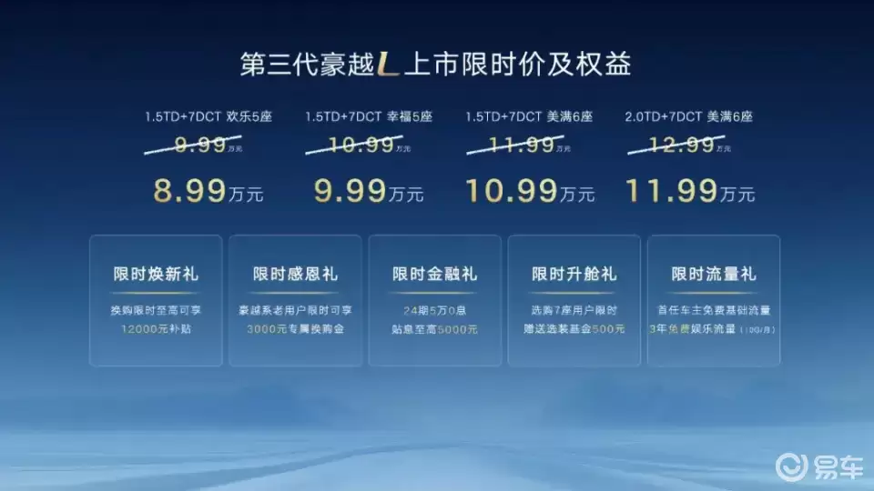 在海南儋州海花岛,一场备受瞩目的汽车盛会拉开帷幕,第三代豪越L正式亮相。新车共推出4款不同配置车型,官方指导价定为9.99万元至12.99万元。为回馈广大用户的支持与厚爱,凡在12月31日前下订的用户,均可享受1000元订金抵11000元购车款的超值优惠,上市限时价最低仅需8.99万元起。