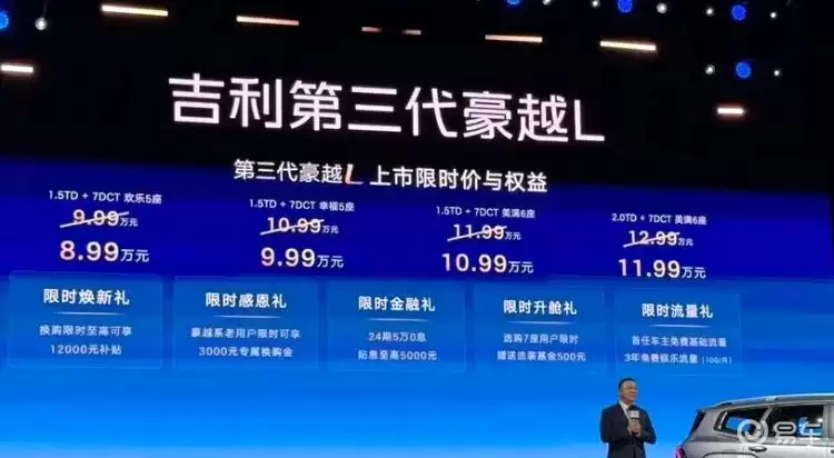 吉利豪越L新车上市:8.99万起售,7座布局+高功率动力