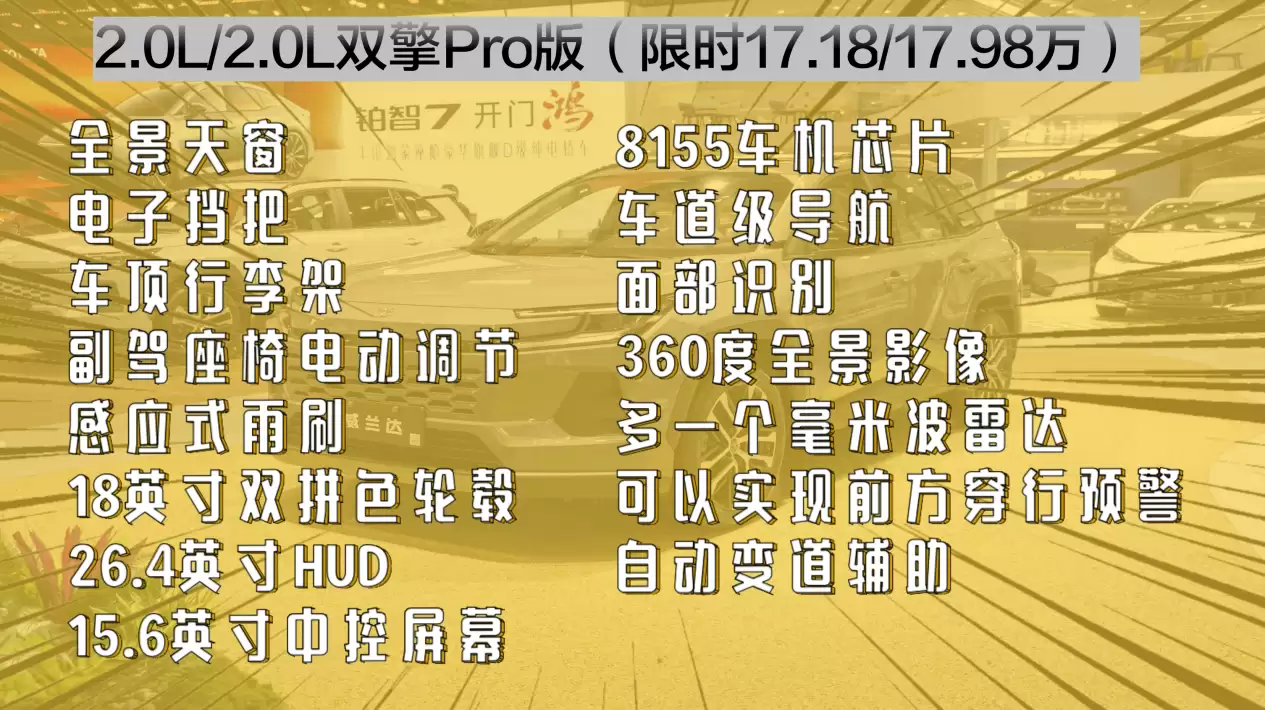在AIR版的基础上,消费者可选择付费升级至PRO版。燃油版需加价1.2万元,双擎版加价1万元,即可享受全景天窗、电子换挡杆、车顶行李架、副驾驶电动调节、感应式雨刷、双色轮毂、26.4英寸HUD抬头显示系统、15.6英寸中控屏(搭载8155车机芯片)、360度全景影像以及毫米波雷达等高阶配置。这些升级既提升了日常用车的便利性,又增强了驾驶体验,加价幅度合理,值得消费者认真考虑。