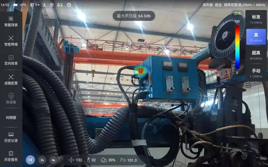 以某汽车制造车间为例,气动设备软管的气体泄漏问题长期困扰着生产环节。传统检测手段难以快速定位泄漏点,而讯飞潮汐力的AI声学成像仪凭借其高灵敏度的声学传感器与智能算法,能够实时捕捉泄漏产生的超声波信号,并通过可视化成像技术精准定位泄漏位置,大幅缩短了检修时间,有效降低了生产损耗。