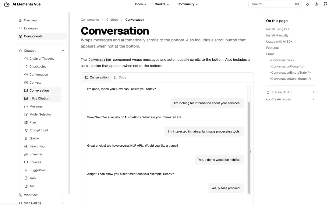 Vercel的AI Elements崭露头角后,社区迅速推出了对应的Vue版本:AI Elements Vue。