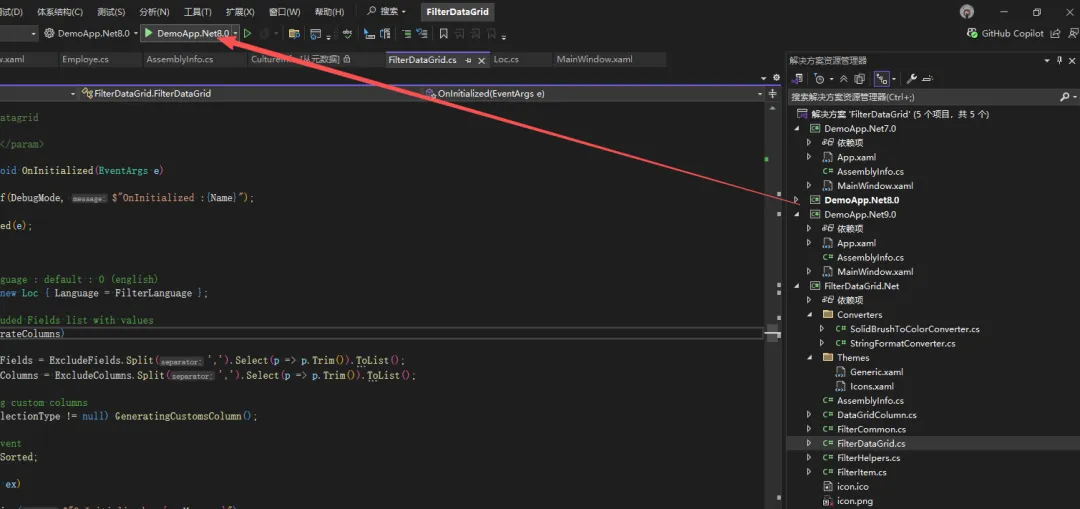 将DemoApp.Net8.0设为启动项目,即可查看实际运行效果: