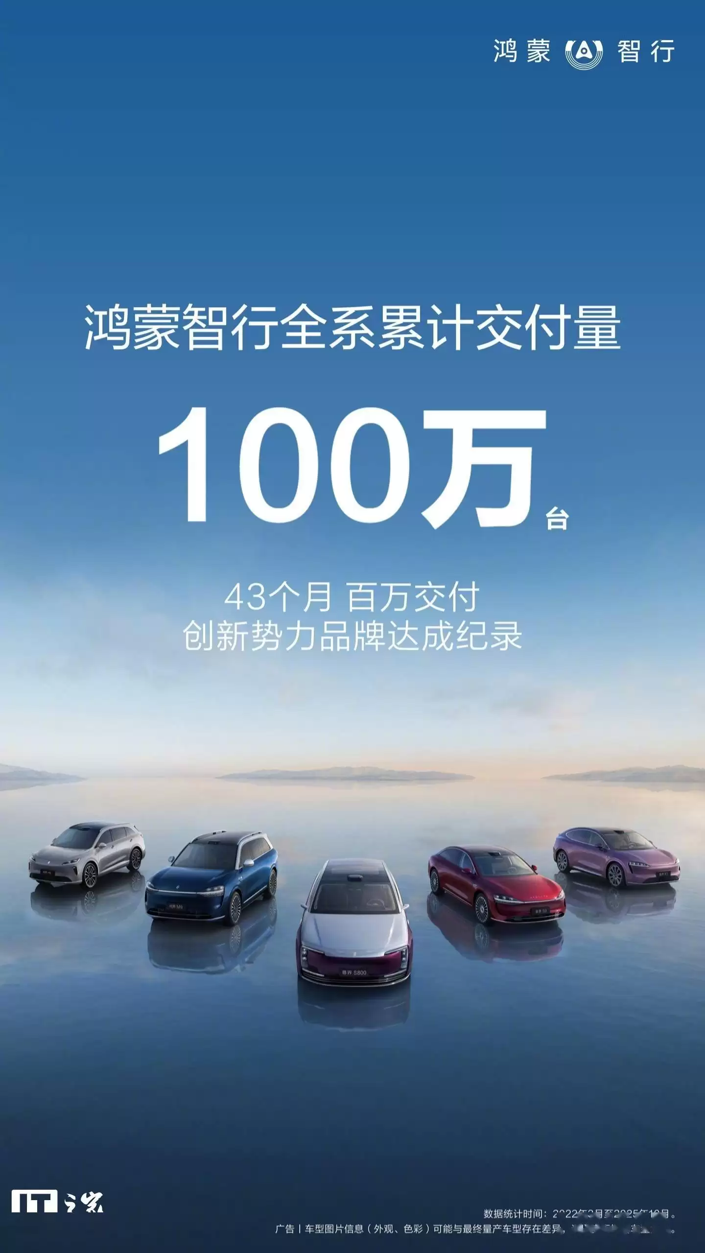 10月28日,华为常务董事、终端BG董事长余承东通过社交平台宣布,鸿蒙智行全系交付量正式突破100万台。他分享的海报显示,达成这一成就仅用时43个月,再次刷新了新势力品牌的交付纪录。从数据来看,鸿蒙智行不仅在交付规模上持续领跑,更在交付速度上展现出显著优势,成为行业关注的焦点。