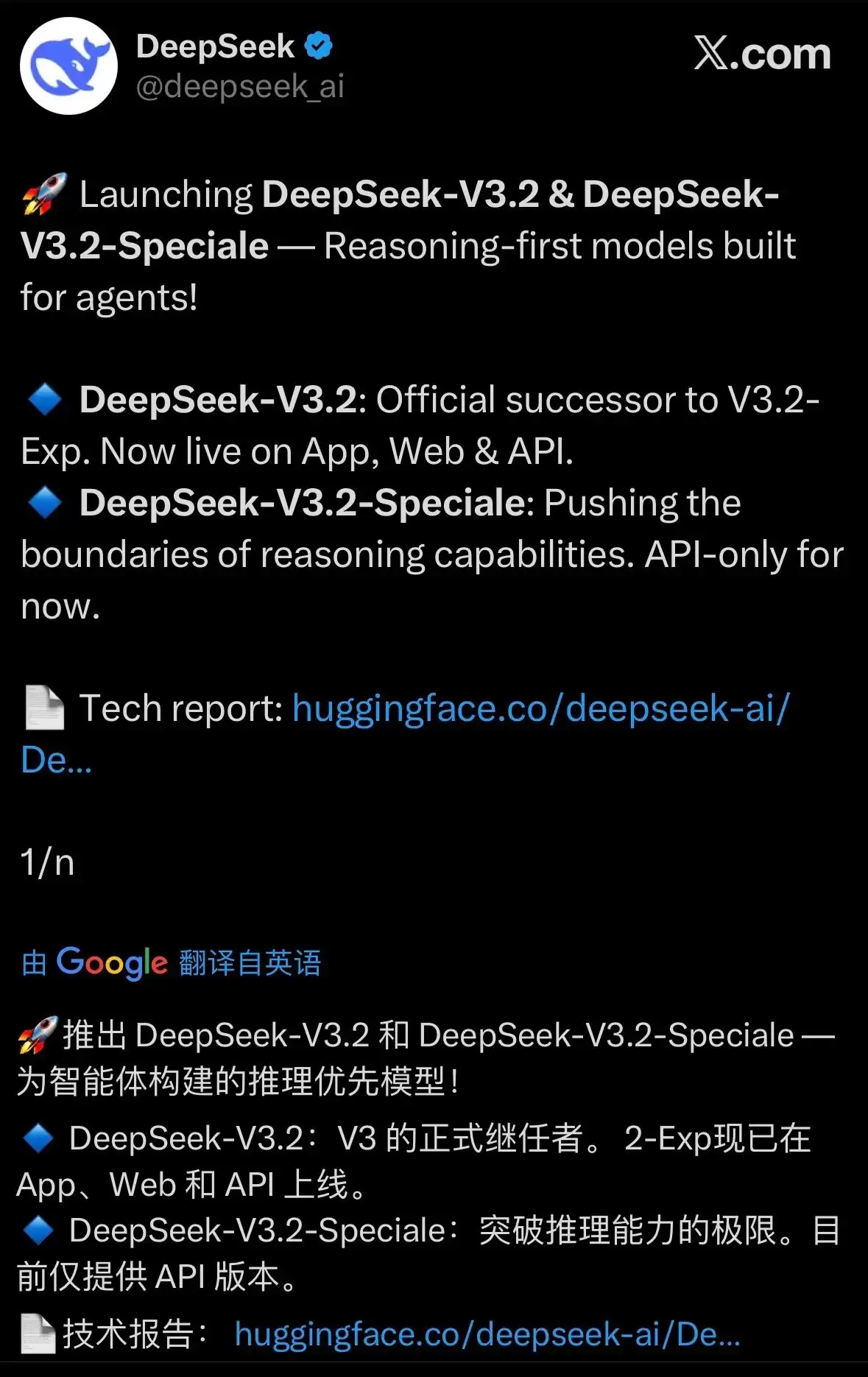 最后附上开源链接:https://huggingface.co/deepseek-ai/DeepSeek-V3.2