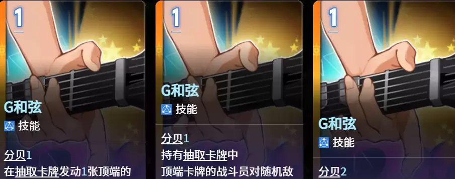 在后期强化类卡牌中,还能为我方队内的17回合增加效果。而为她搭配妮雅的主要原因,是妮雅在辅助位上的增幅治疗能力非常强势。她的技能可以与专属技能形成完美配合,特别是当「灵光一闪」触发时,配合「重音闷音」这张卡牌,还能丢弃当前费用最高的一张卡牌,此时拥有这张卡牌的战斗员,会对随机敌人造成150%的额外伤害数值。这种通过卡牌联动带来的控场能力同样十分强势。基础卡牌方面,妮雅除了技能恢复效果外,还拥有「G和弦」这样的技能卡,在抽卡时通常可以使用这个初始卡牌效果。
