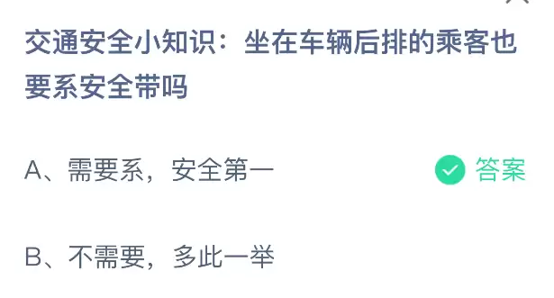 后排乘客需系安全带吗?支付宝蚂蚁庄园12月2日答案