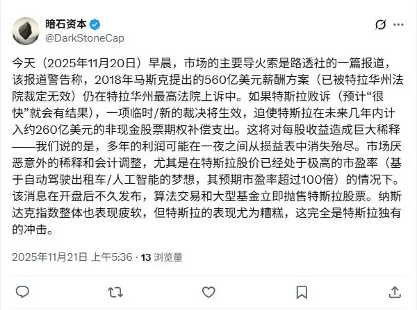 如果特拉华州最高法院最终判定这一系列薪酬操作违规,那么特斯拉不仅要面对法律的铁拳,更要面对一张高达260亿美元的账单。