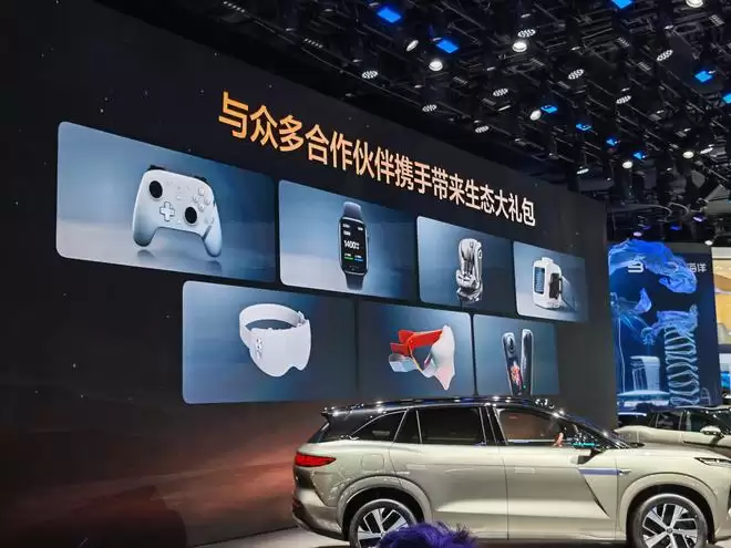 比亚迪此次联合美的、好孩子、倍轻松、影石等品牌,打造“人×车×家”智慧生态。用户可在车内语音控制家居设备,车辆接近家门时自动触发“回家模式”,提前开启灯光、空调。同时,智能儿童座椅、按摩仪、运动相机等生态周边均可与车机联动,极大拓展了用车场景的广度与深度。