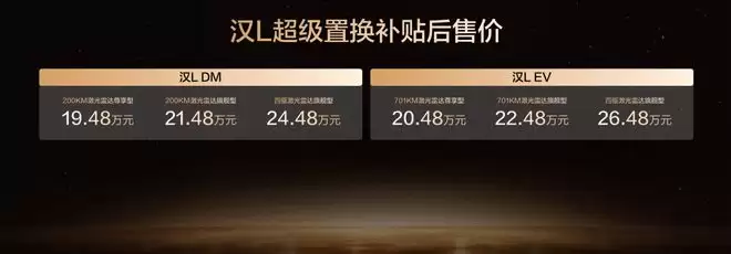 比亚迪汉L/唐L置换补贴后19.48万起 新增配色/OTA升级