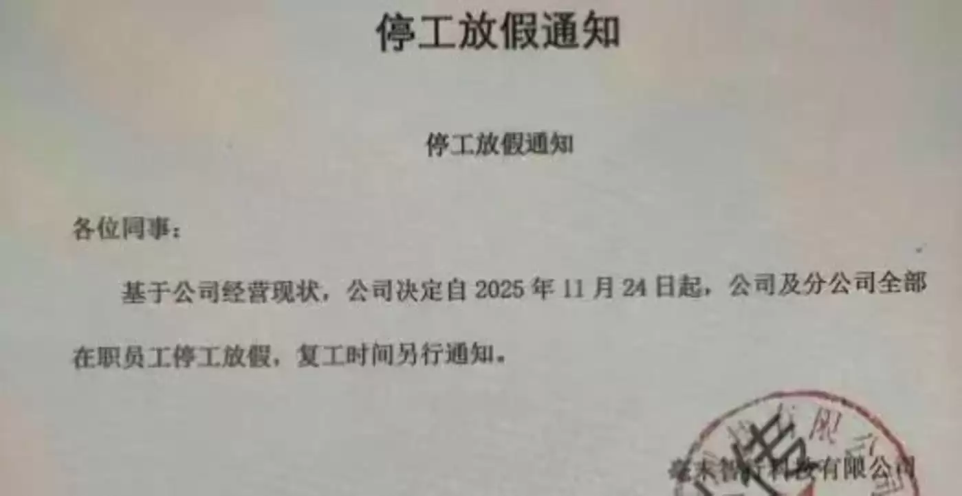 北京奥北科技园,一家曾估值百亿的独角兽公司,在2025年寒冬中突然停摆,近300名员工被一纸通知拦在了公司门外。