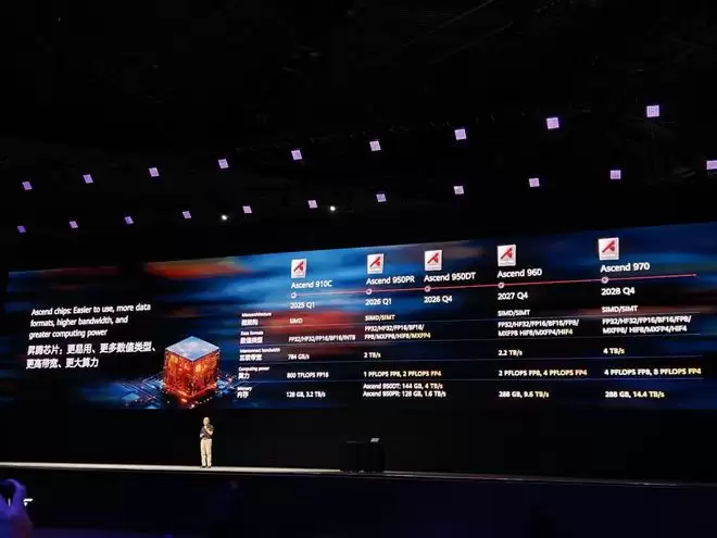 9月18日消息,在今日举行的华为全联接大会上,华为副董事长、轮值董事长徐直军公布了昇腾芯片未来三年的发展规划:计划于2026年第一季度推出昇腾950PR芯片,同年第四季度推出昇腾950DT,随后将于2027年第四季度发布昇腾960芯片,并在2028年第四季度正式推出昇腾970芯片。