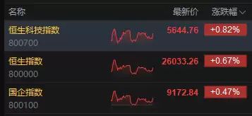 12月1日消息,港股三大指数集体上涨。截至午间收盘,恒生指数涨0 67%,报26033 26点,恒生科技指数涨0 82%,国企指数涨0 47%。盘面上,科网股涨多跌少,网易涨超3%,阿里巴巴涨超2%