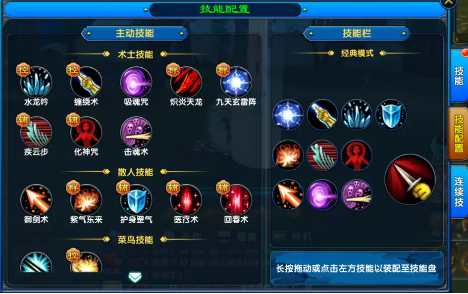 剑客适合PK,第三行核心技能需要拉满。追风剑点1级作为基础,风雷剑点10级掌握控制效果,天崩地裂点5级凭借三段击触发增伤,点穴点5级强化控制,新建透明点5级抵抗沉默和缓慢,天然点5级弥补远程输出短板。