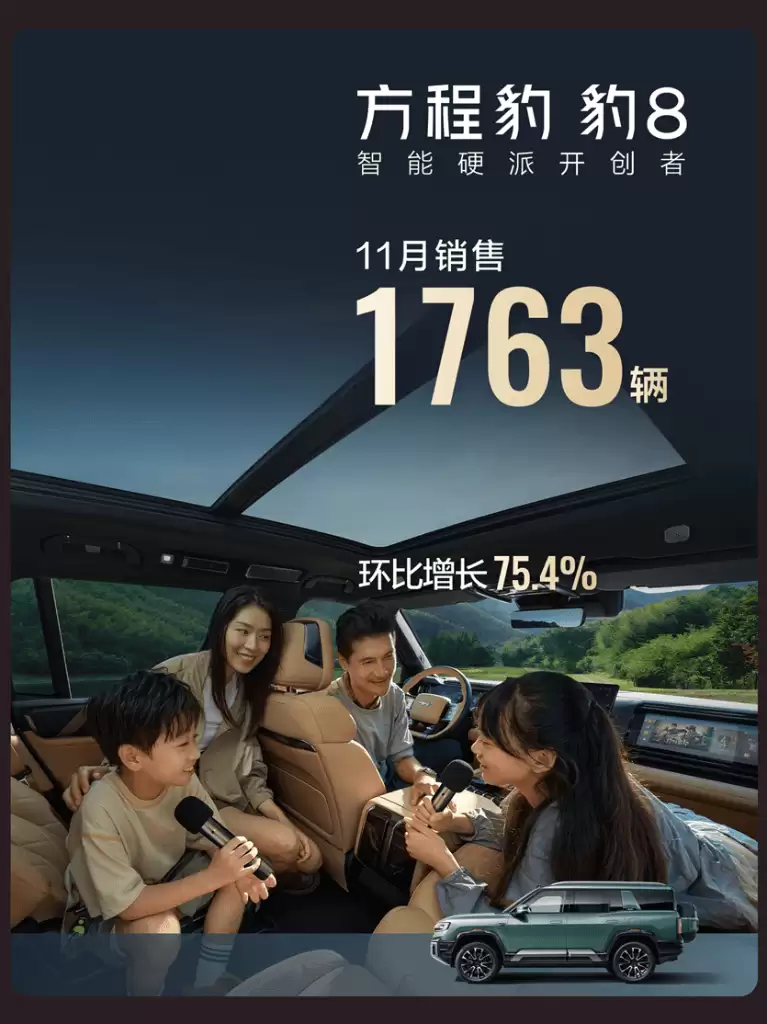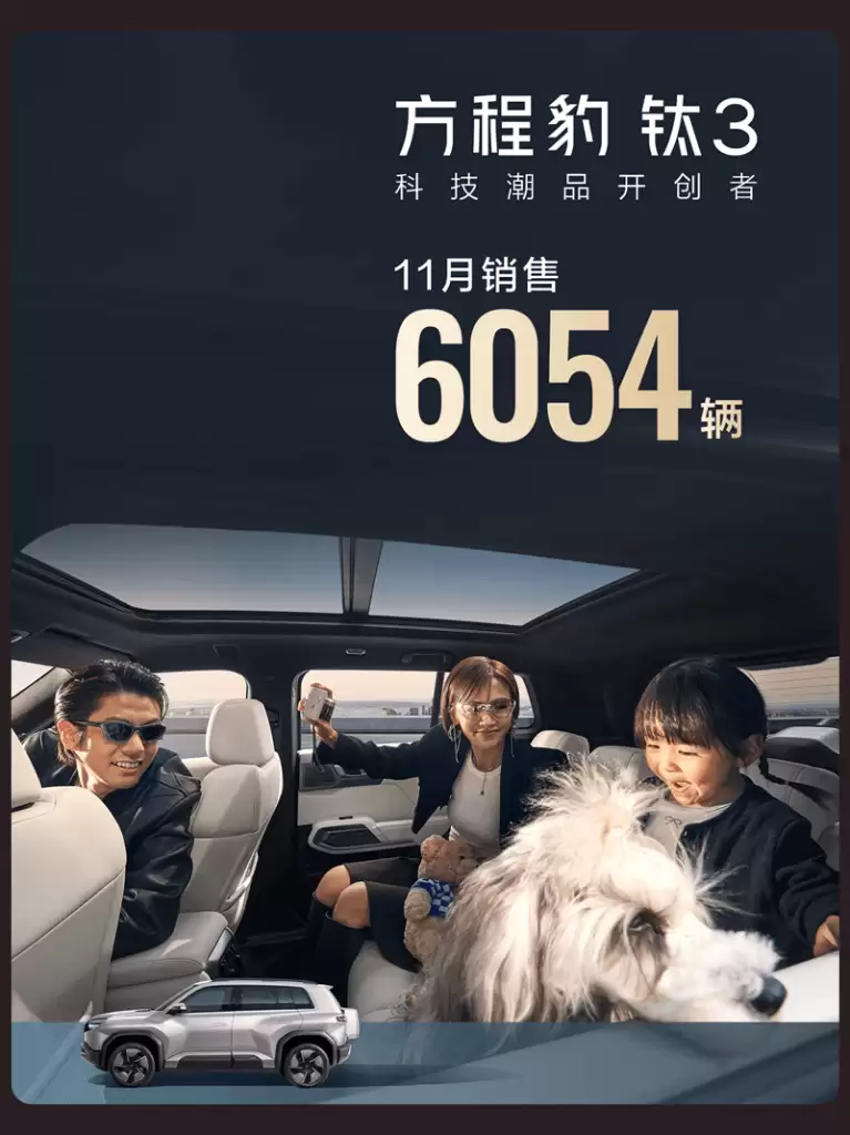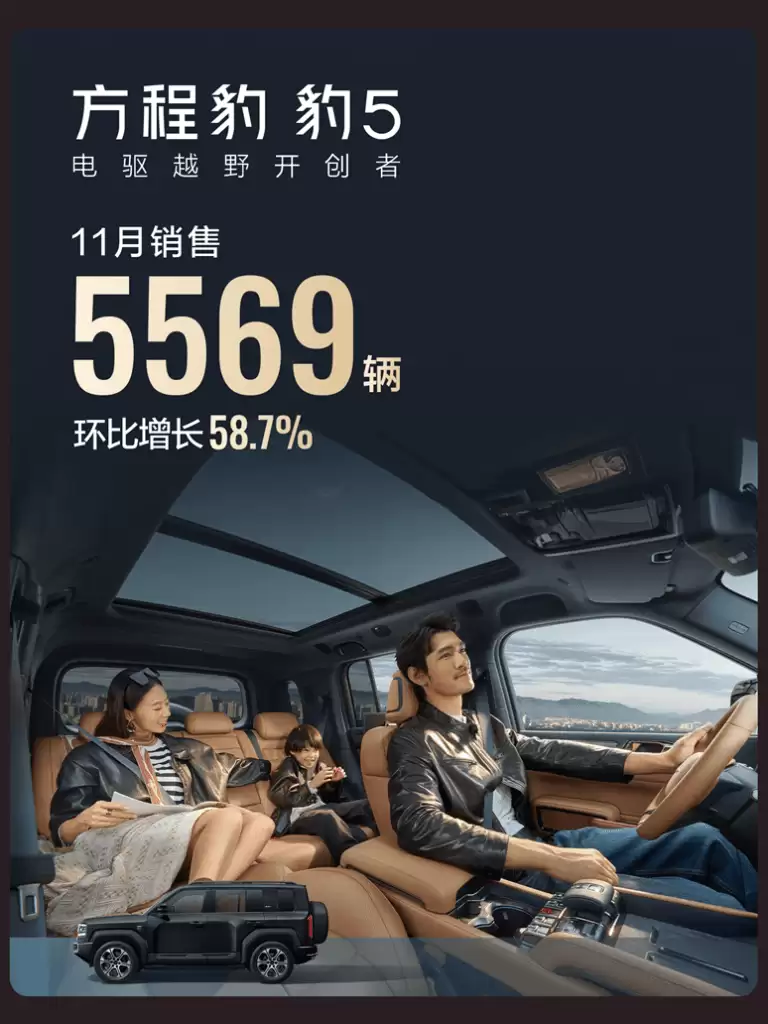 方程豹11月售出37405台,成比亚迪增速最快子品牌