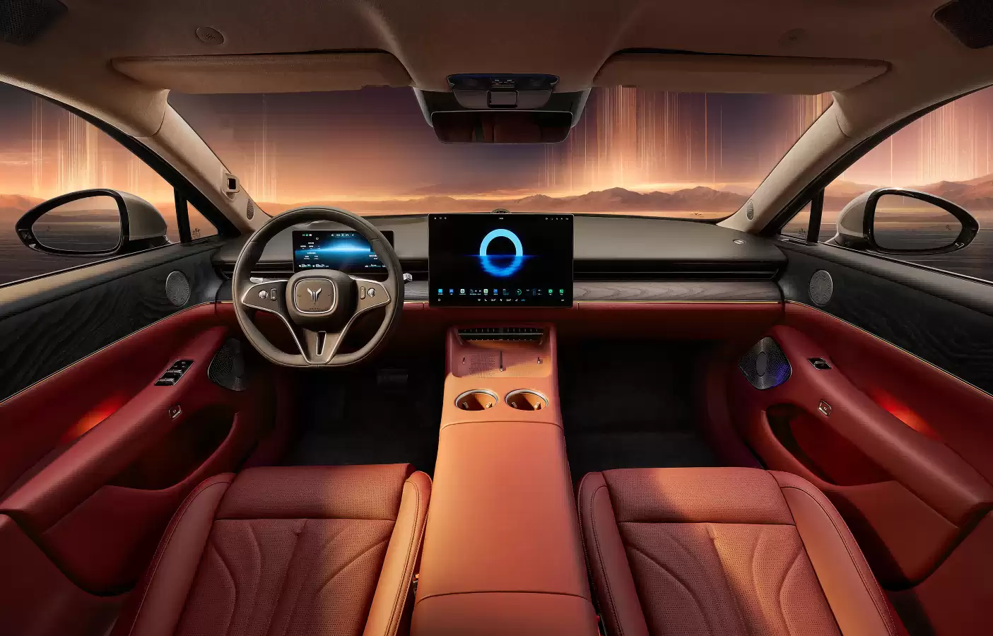 在设计语言的表达上,追光L选择了更具文化辨识度的呈现路径。以"天地鲲鹏"为哲学内核,外观将《逍遥游》中的意境转化为现代车身型面语言:"鲲鹏展翼"前脸、"昂首凌云"侧面线条与"光羽"贯穿式尾灯形成视觉呼应;内饰则通过"群山抱月"环抱式布局、"水清木华"真木饰板等细节,营造出山水意境与科技感交融的座舱氛围。色彩命名更暗藏文化密码:"金韫红"取自故宫金瓦红墙,"杜若白"寓意君子之佩,"玄英黑"象征蓄势待发的力量感。这种从传统哲学到现代设计、从色彩到材质的系统性表达,标志着中国汽车品牌开始摆脱对西方设计语言的依赖,尝试构建属于自己的审美体系。正如设计团队所言:"豪华不应是西方标准的复刻,而应是文化自信的具象呈现。"