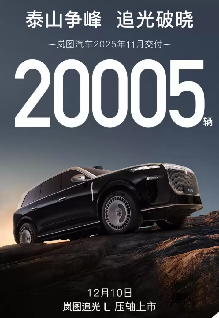 在各大车企纷纷公布月度销量成绩之际,岚图汽车用一组亮眼数据引爆行业关注——单月交付量突破20005台,同比增长84%,连续十个月保持强劲增长态势,更成为首个达成30万辆整车下线里程碑的央企高端新能源品牌。这一成绩不仅印证了品牌在面对市场变幻时的发展韧性,更折射出中国新能源汽车产业正在经历的价值重塑。在技术迭代与消费升级的双重驱动下,将于12月10日推出的追光L,正以“新时代旗舰轿车”之姿,向长期被海外品牌垄断的豪华车市场发起冲击。
