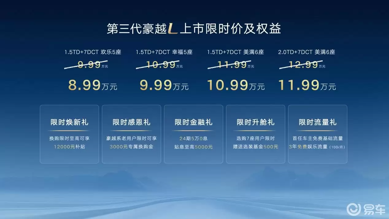吉利豪越L 8.99万起上市,大空间七座布局满足家庭多元需求