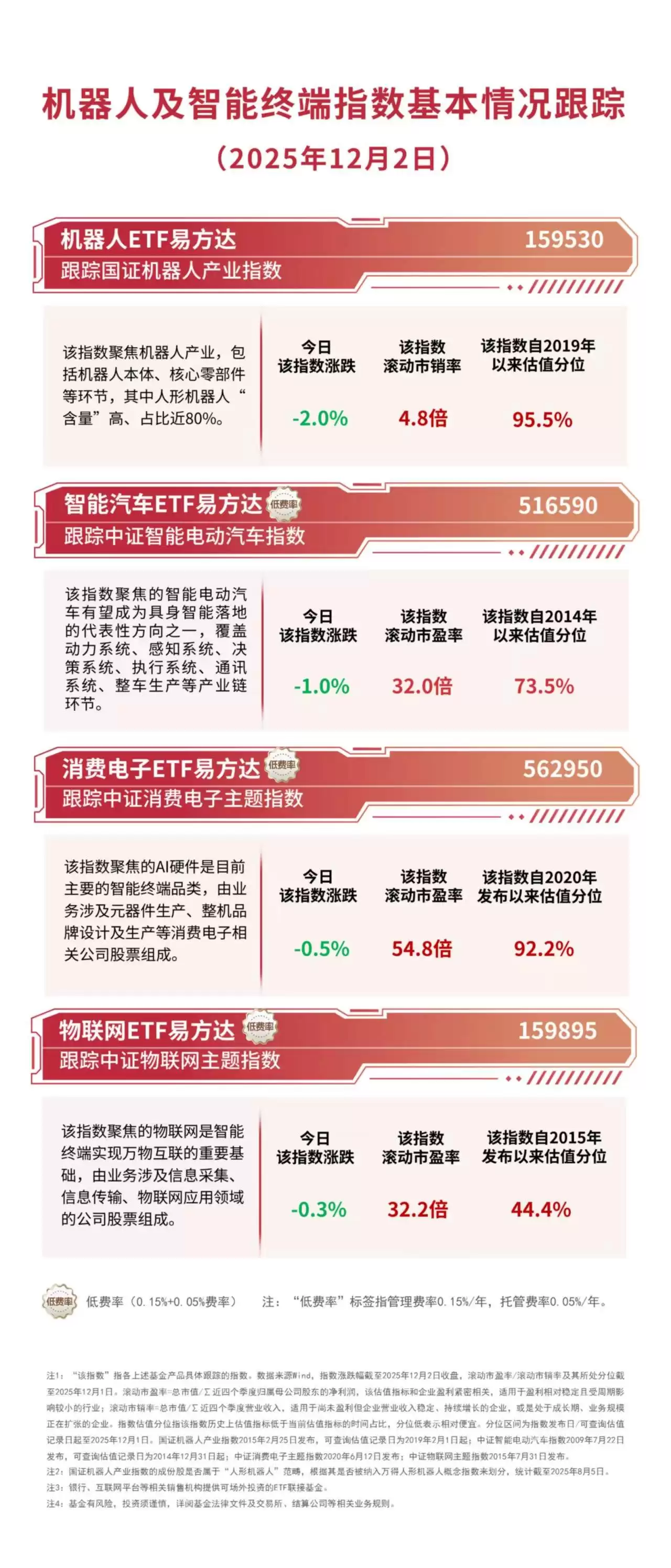 截至收盘,国证机器人产业指数下挫2.0%,中证智能电动汽车指数下跌1.0%,中证消费电子主题指数回落0.5%,中证物联网主题指数小幅下跌0.3%。相关ETF迎来资金逆势加仓,机器人ETF易方达(159530)全天净申购规模达7500万份。