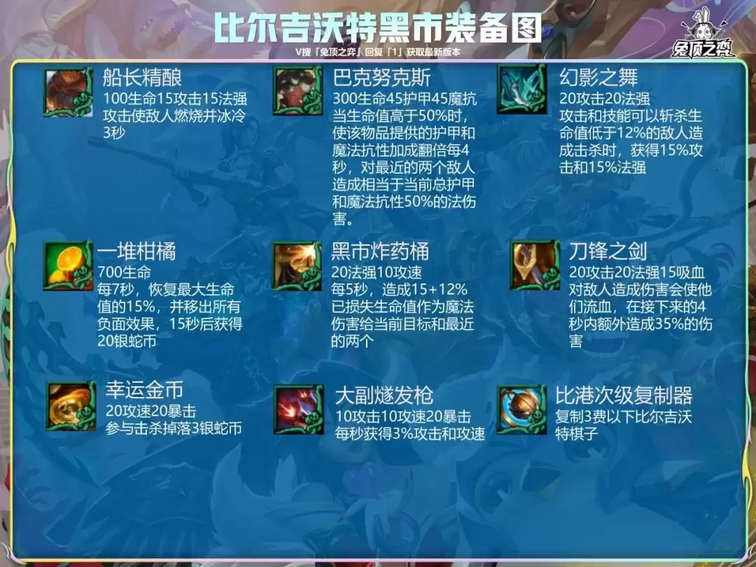 云顶之弈S16比尔吉沃特黑市装备一览图