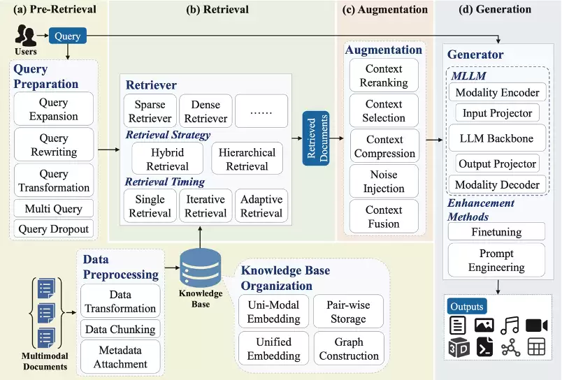 基于这个新的分类法,该综述深入分析了MM-RAG系统的工作流程,并将其划分为四个关键阶段(如图1所示):