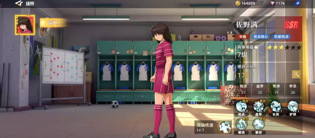 第三位推荐的前锋是佐野满。作为游戏中常被放在中锋或前锋位置上使用的球员,他在加成方面通过核心效果及抢点能力可以带来较高的数值。虽然他在红卡评级中的得分没有前两位那么高,但他在同类球员中的抢点得分占比相对较高,动作技巧上也确实具备一定优势。后期利用自身技能效果所带来的顺射技能,能够根据抢点带来足够的加成。尤其是当他的脱手率达到6.8%之后,抢点成功时获得球权的几率就会大大提高。
