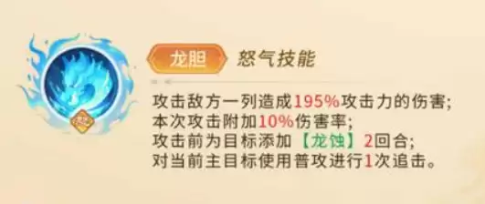 在核心输出机制方面,赵云的“怒气技能”值得重点关注。该技能可对一列敌人造成195%基础伤害,并附加10%概率的“龙魂状态”增伤。当攻击目标处于该状态时,还能获得额外状态加成。特别是在配合普通攻击的追击效果时,可以形成高效连招循环。由于赵云多个技能机制都依赖于连击触发,玩家可通过叠加连击次数来最大化其输出潜力。