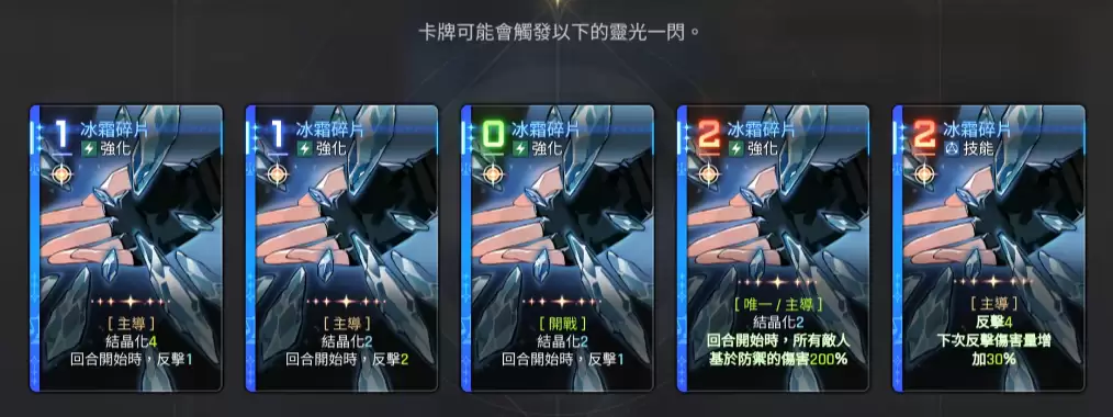 如果想组建一支反击队,有个角色是强烈推荐大家了解的,那就是麦格纳。比起卡利佩来说,她在实战中更偏向于前排定位角色,使用自身技能时有足够的强化主导可以利用,再加上一定的反击卡牌,因此她的效果非常适合走反击流。她基本上一些比较强势的卡牌能力中都带有可以触发的反击效果,比如其中的冰霜碎片,大家一定要考虑低费使用,这里2费的强化那就很难用,而且其中的效果是根据所有敌人在防御数值上提取的伤害才能达到200%的数值。就现阶段这个防御力来说,其实麦格纳是会卡手的,所以比较推荐大家用她的3个强化。