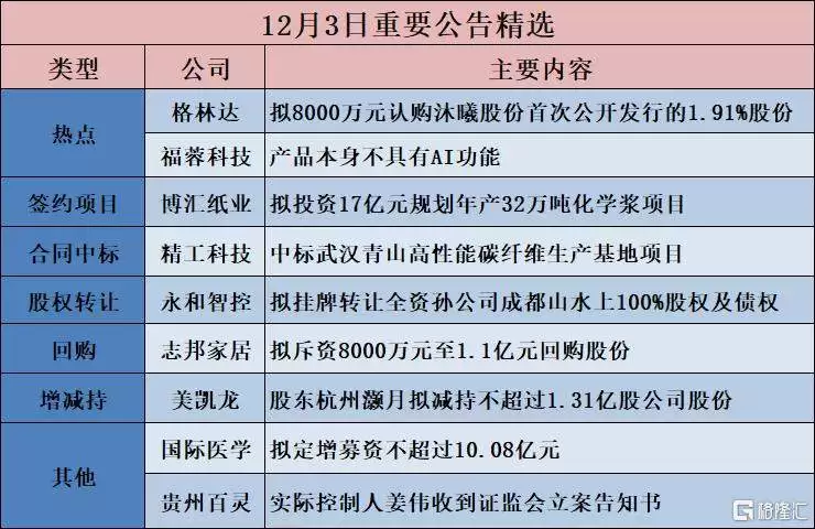 【热点】福蓉科技(603327 SH):产品本身不具有AI功能格林达(603931 SH):拟8000万元认购沐曦股份首次公开发行的1 91%股份【项目投资】天沃科技(002564 SZ):拟投资建