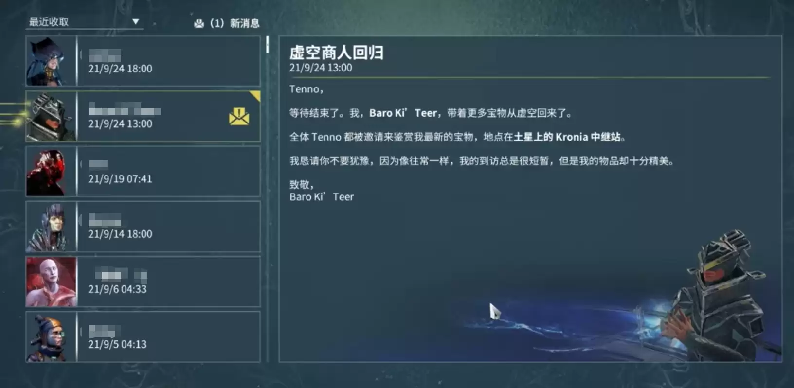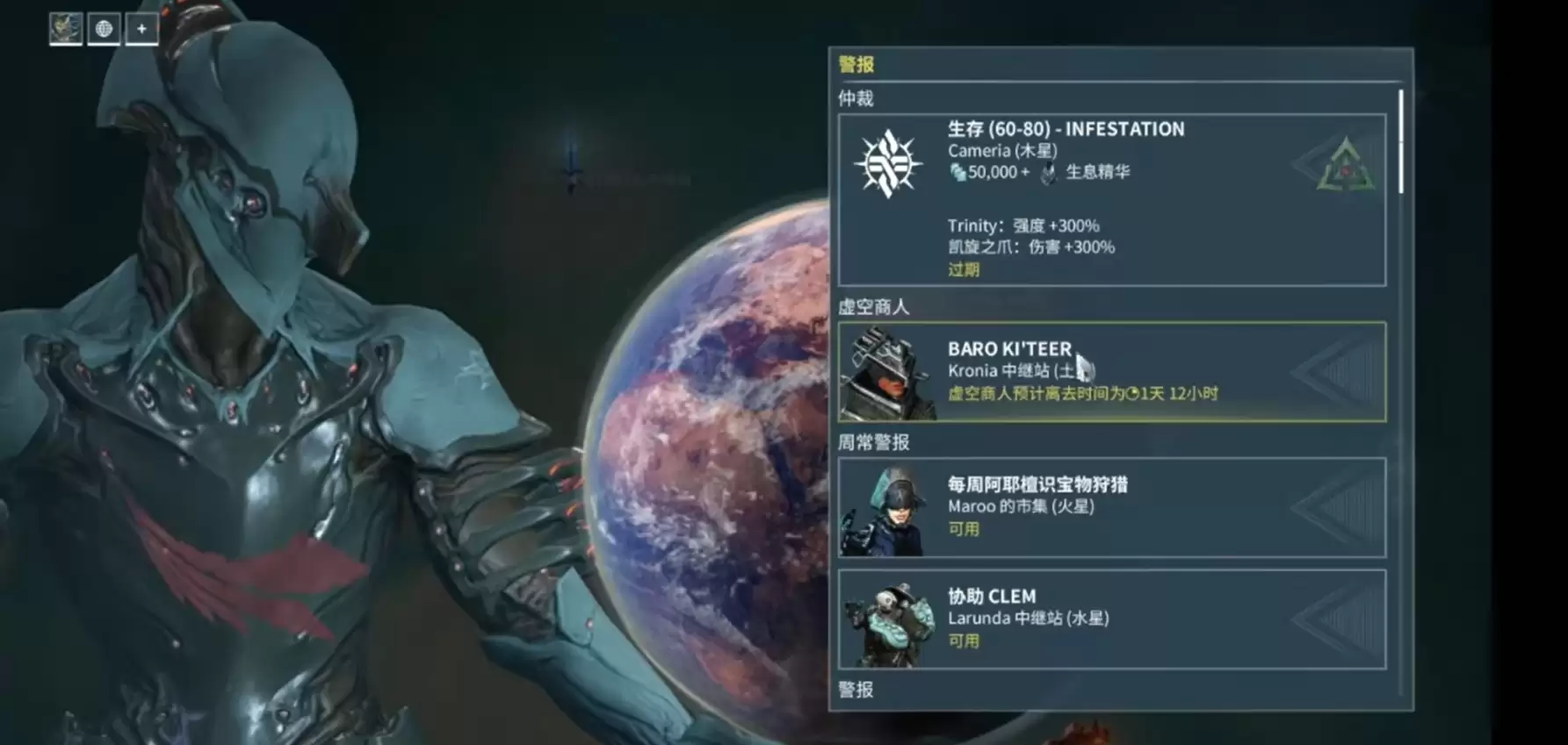 除了依靠地图定位外,还有多种方式能帮助玩家迅速锁定虚空商人的行踪。首先,在他抵达前,系统会通过邮件通知玩家具体的上线时间及所在中继站名称,部分邮件甚至附带一键传送功能,点击即可直达;其次,打开游戏内大地图后,各中继站中央广场会出现明显的商人图标,支持自动导航前往;此外,警报界面也会实时更新他的出现地点,确保玩家不会遗漏每一次交易机会。