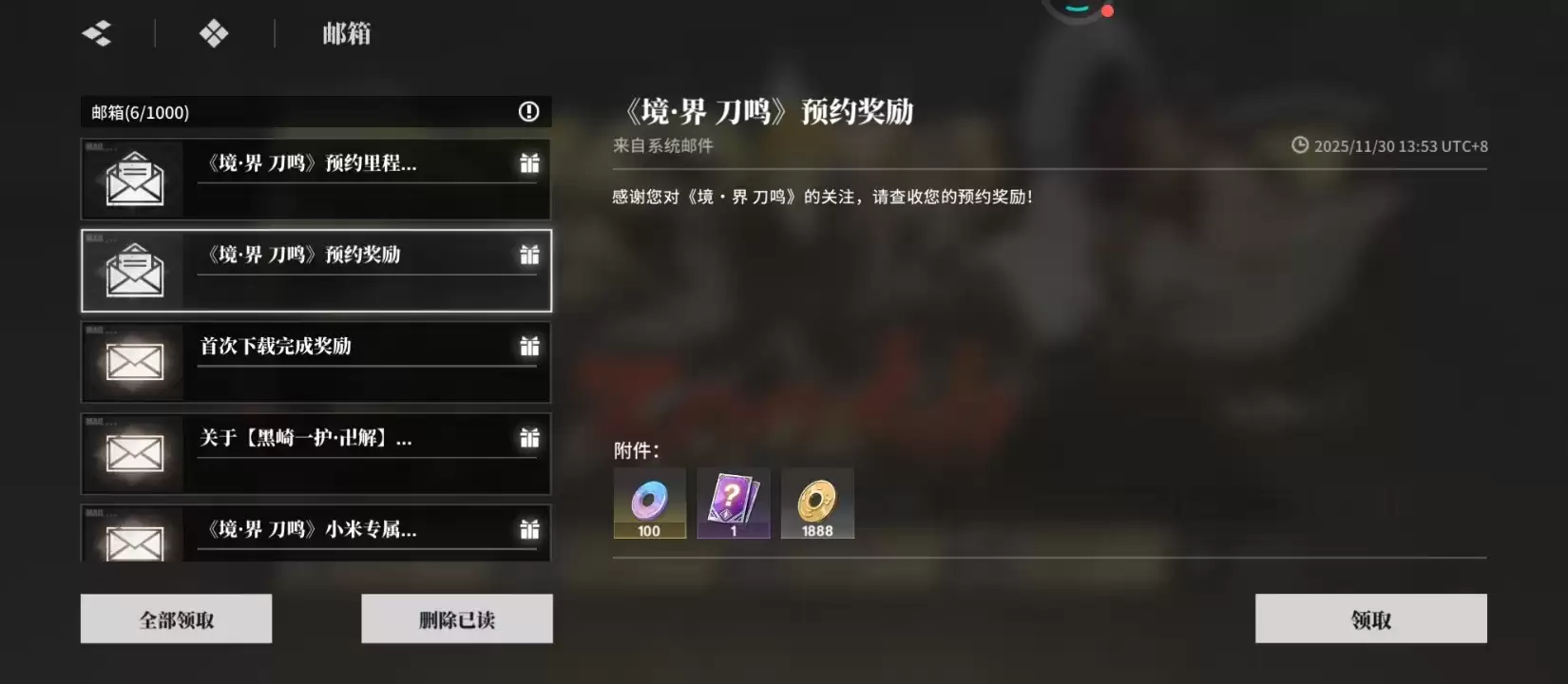 《境·界刀鸣》预约奖励一览