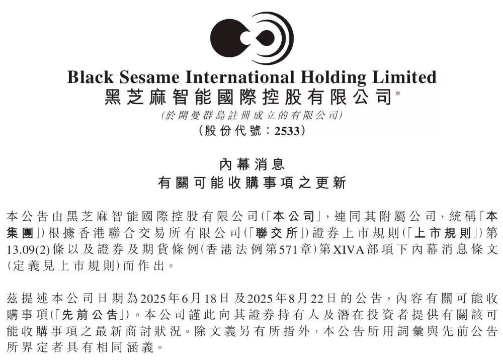 12月4日,芯智讯报道称,港股上市的国产智驾芯片厂商黑芝麻智能于3日晚间发布公告,计划通过收购目标公司股权及注资的方式,并购珠海亿智电子科技有限公司。预计此次交易总金额将在40亿至55亿元人民币之间。