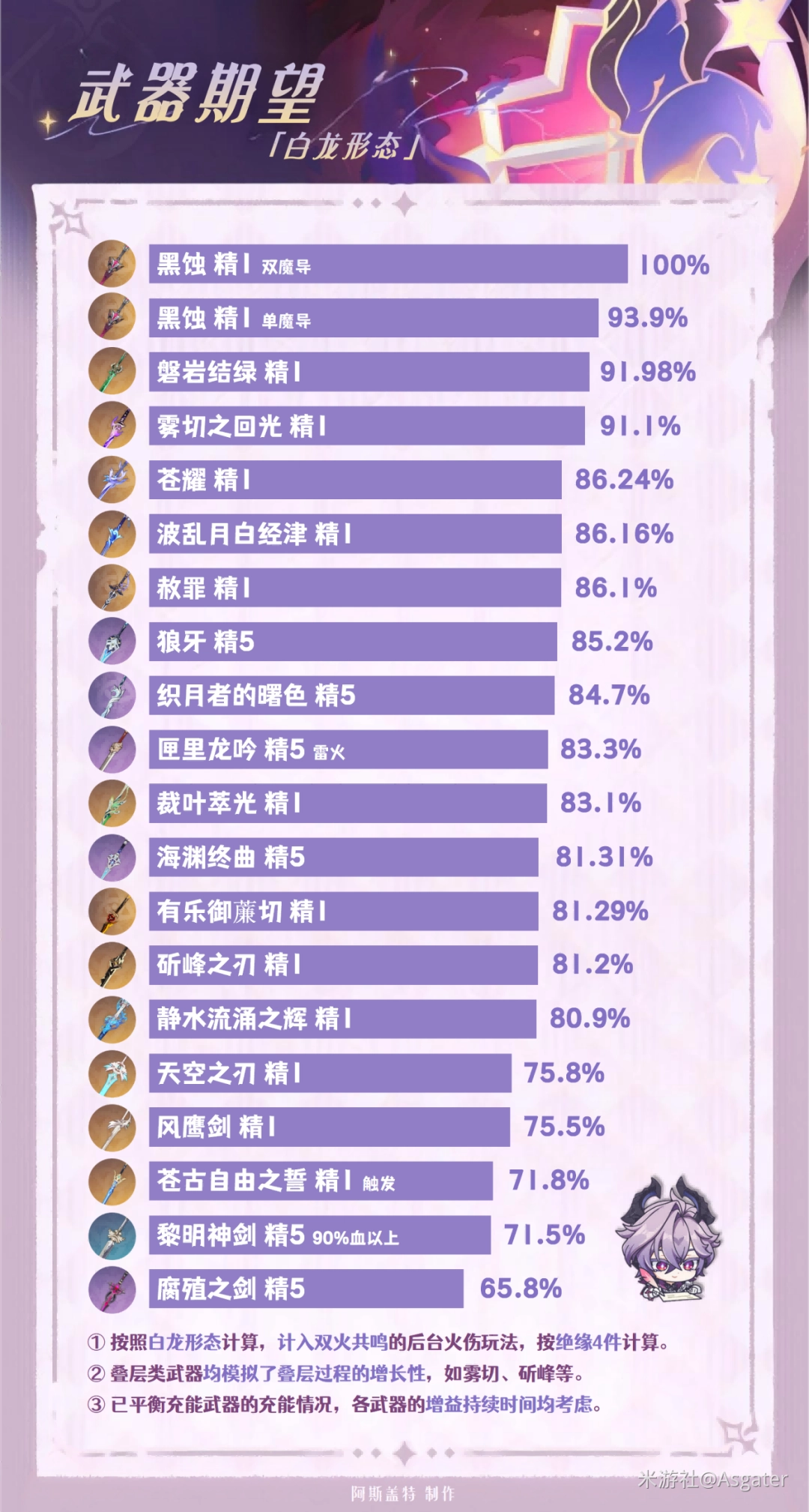 ①【苍古自由之誓】需触发反应才能叠层,黑龙的蒸发/融化玩法可选,副属性精通还能提升反应伤害。