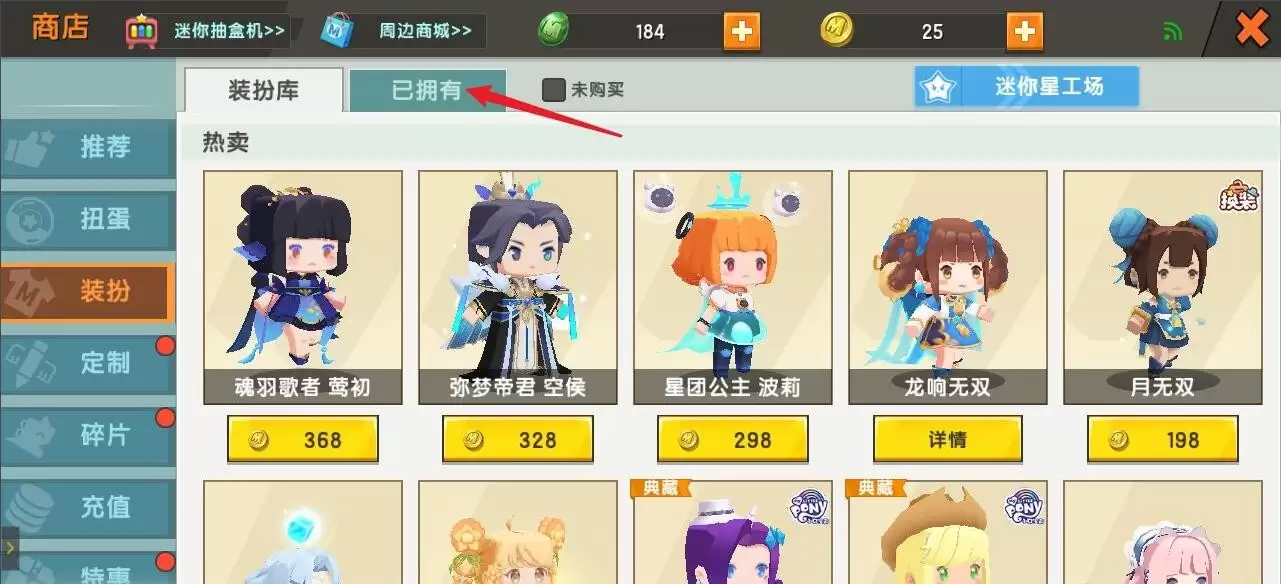 进入商店后,在左侧菜单栏找到并点击"装扮"选项。