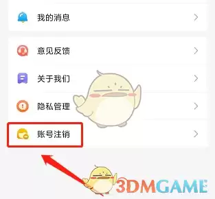 2、跳转至个人主页后,在菜单列表中找到并点击【账号注销】按钮。