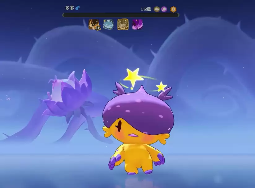 多多这只精灵光看外表就十分讨喜。它拥有毒系加地面的双属性组合,在游戏中并不算常见。多多头顶长着帽子形状的器官,摸起来手感应该很不错。有趣的是,多多其实胆子很小,一旦受惊就会从头顶喷射毒液自卫,不过喷完后自己也会累得晕过去。这个设计相当用心,看得出游戏策划在角色塑造上花了不少心思。