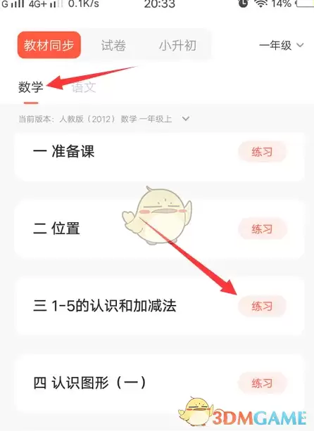 2、进入功能界面后选择对应学科,找到需要解答的习题内容,点击进入练习题模式。