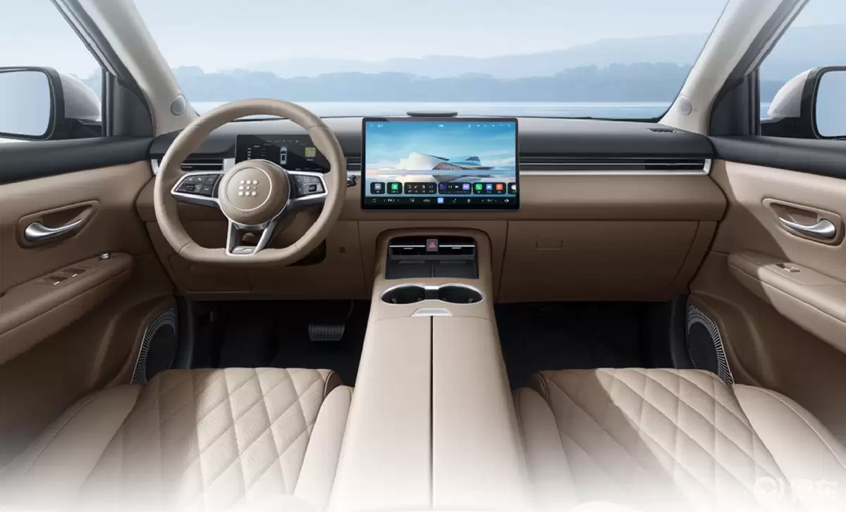 进入车内,全液晶仪表与15.6英寸悬浮式中控屏的组合营造出浓郁的科技氛围。采用怀挡设计的换挡机构不仅操作便捷,更为副仪表台区域释放出更多空间,精心布局的手机无线充电面板与镂空式储物空间,显著提升了车内空间的实用性和便利性。