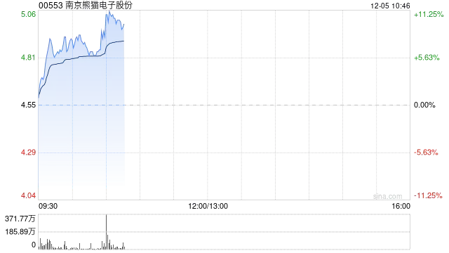 南京熊猫电子股份(00553)今日早盘股价强势拉升,涨幅达9.01%,现报4.96港元,成交额达9141.01万港元。