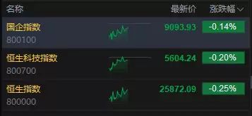 港股市场在12月5日承压下行,三大股指集体收跌。截至午间收盘,恒生指数下跌0.25%,报25872.09点;恒生科技指数下挫0.20%;国企指数走低0.14%。板块表现分化明显,科网股呈现涨跌不一态势:小米、百度逆势上涨超1%,而网易则下跌逾1%。电力设备股涨幅领先,其中金风科技(002202)大涨超过6%;有色金属板块普遍上扬,江西铜业(600362)涨幅突破5%;航空股表现疲软,南方航空(600029)跌幅超过2%。今日两只新股挂牌交易均遭遇破发,遇见小面重挫超27%,天域半导体跌幅逾24%。