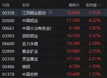 恒指半日跌0.25%有色普涨,江西铜业飙升超5%遇小面跌27%